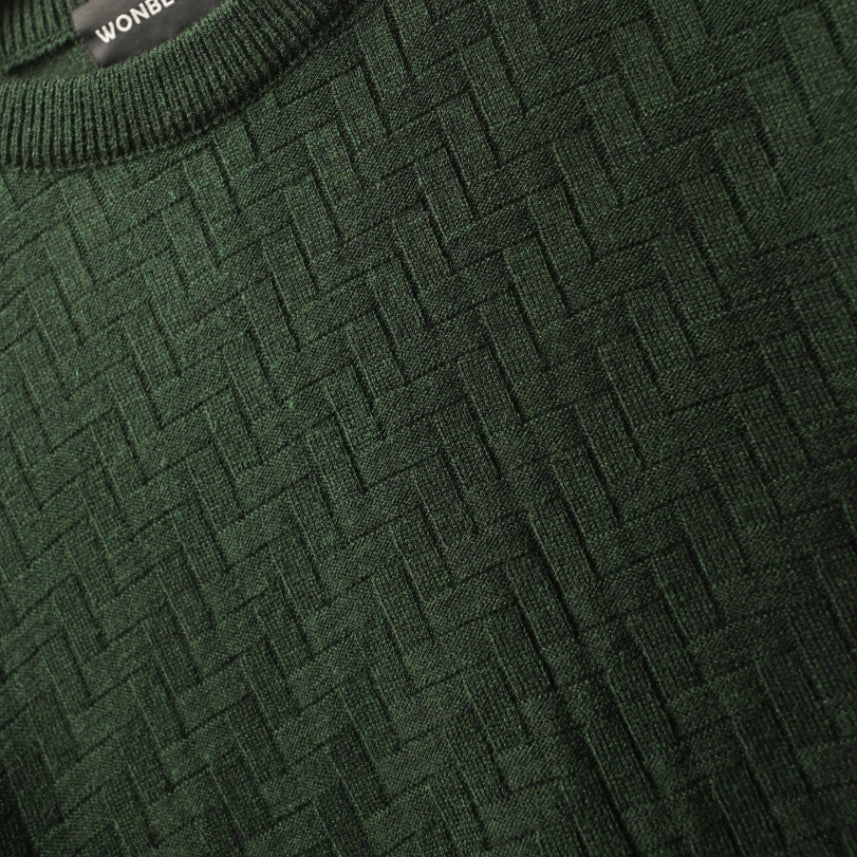 GREEN BASKETWEAVE KNIT SWEATER